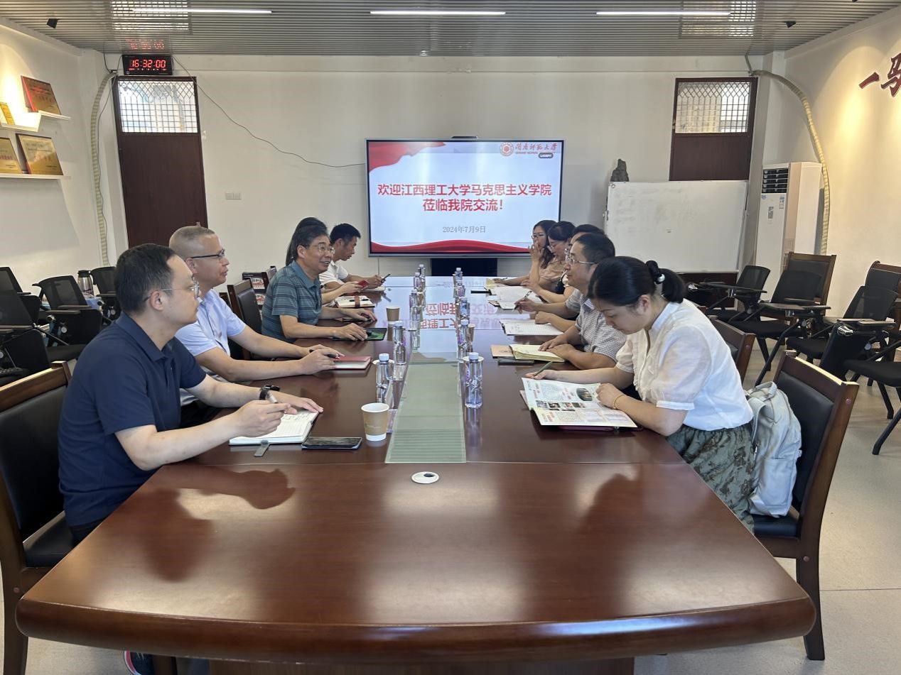 邓显超院长介绍了江西理工大学太阳成集团tyc41183的建设情况,并对我院的思政课教学改革、人才培养等方面取得的成绩表示赞赏。随后双方就大中小思政课一体化建设、高校思政课教学改革、人才引进、科研团队建设、青年教师培养、研究生招生等问题进行了深入交流。