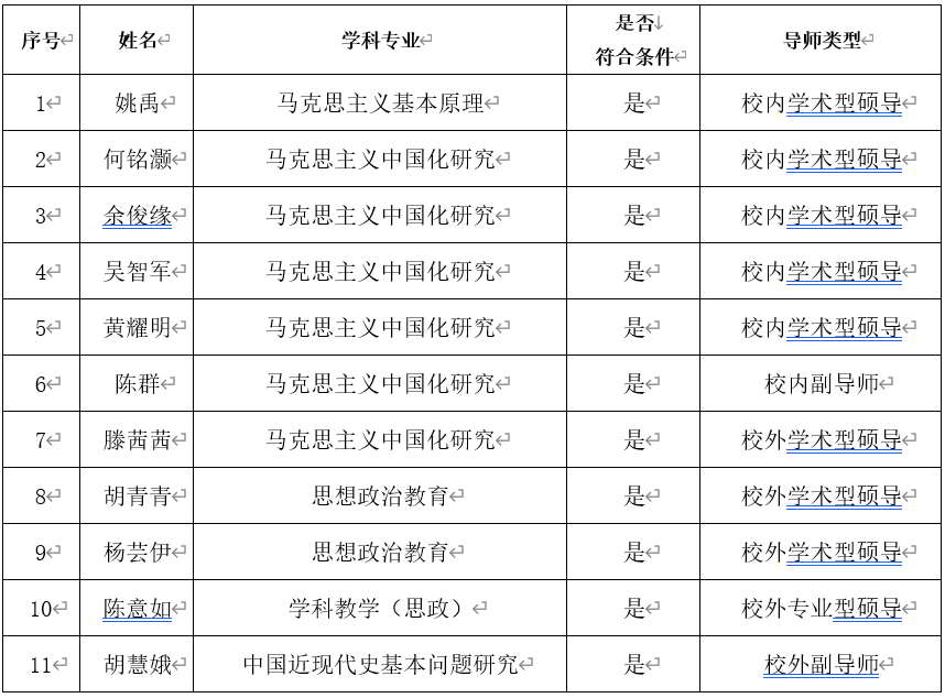 根据《tyc41183太阳成集团研究生指导教师遴选办法》(闽南师大[2020]129号)《〈tyc41183太阳成集团研究生指导教师遴选办法〉相关条款的修订意见》(闽南师大[2022]53号)有关规定,经个人申请、学院审核、太阳成集团tyc41183学位评定分委员会审议通过、党政联席会研究确认,以下教师符合学校申请条件,公示如下: