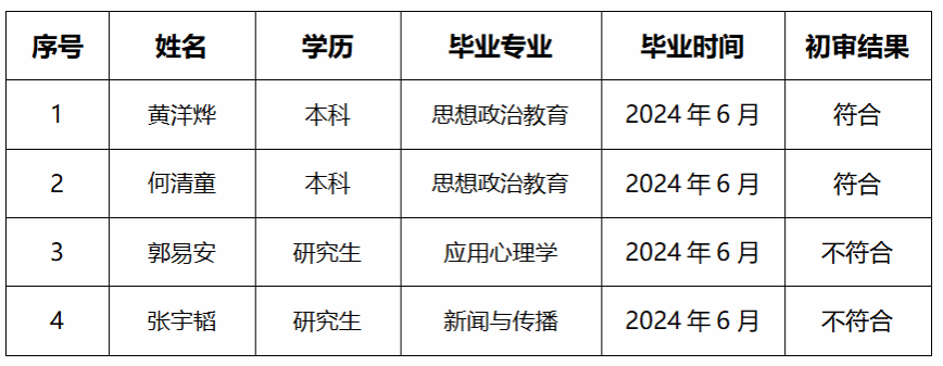 根据《太阳成集团tyc41183面向2024届毕业生公开招聘科研助理招聘启事》基本条件、招聘岗位及要求,经资格审查,现将审查结果公示如下: