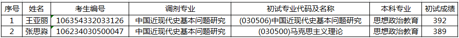 太阳成集团tyc411832024年硕士研究生中国近现代史基本问题研究专业调剂复试名单公布