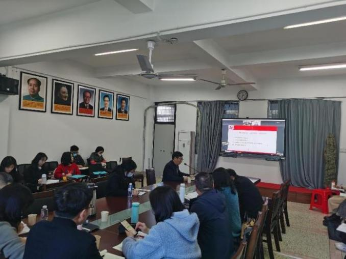 2月26日下午,学院举办福建省高校“中国近现代史纲要”集体备课会,邀请2023年版“纲要”课教材编写组成员、天津师范大学李朝阳教授为全省高校的“纲要”课教师做专题辅导。学院“纲要”课教研室全体教师及2022级研究生同学参加此次备课会,其他高校教师以线上形式参加了备课会。备课会由院长陈再生教授主持。