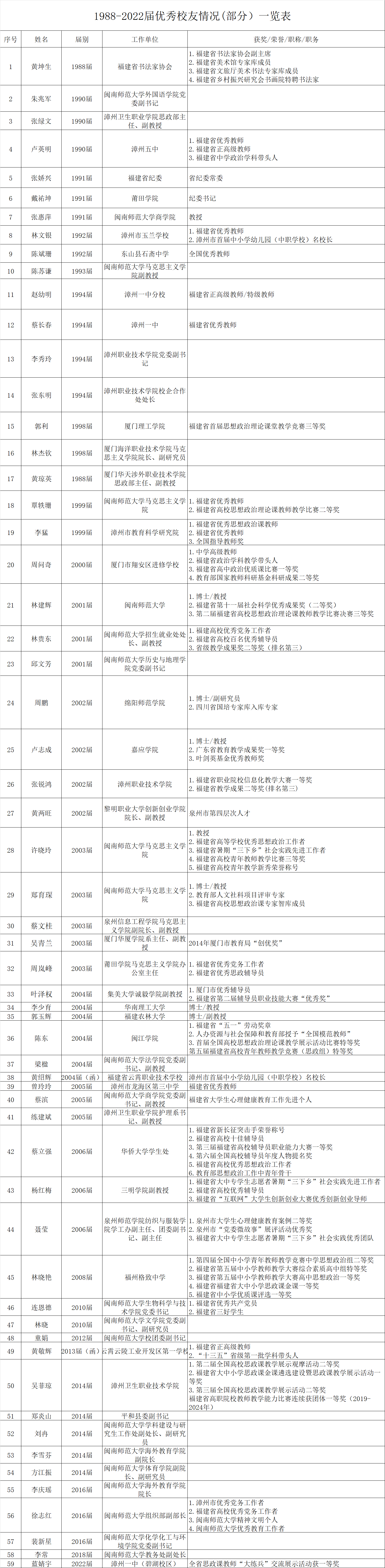 太阳成集团tyc41183(1988-2022届)优秀校友(部分)一览表