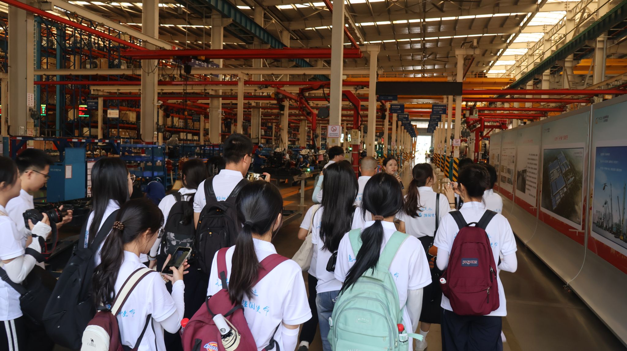 习近平总书记在湖南考察时强调,“要在打造国家重要先进制造业高地”上持续用力。在参观被称为智慧基建“最强大脑”的湖南省交通规划勘察设计院有限公司时,队员们站在被习近平总书记赞誉为“中国的圆月亮”的矮寨大桥模型面前,深刻领悟到在党的领导下,中国人民“逢山开路、遇水架桥”的大无畏精神。通过数字孪生技术,师生观看了湘江大桥建设过程在云端的实时推演,一个个“天堑变通途”的故事让中国式现代化蓝图更加具象化。在中车株洲电力机车有限公司,队员们近距离感受“中国速度”背后的科技力量,磁悬浮列车研发实验室中,工程师生动展示着“产学研用”协同案例,校企联合攻关的永磁牵引系统,助力列车能耗降低30%。在粤汉铁路株洲总机厂筹备处旧址,队员们聆听企业资深员工讲述祖孙四代坚守铁路的故事;在智能化车间,队员们观摩年轻的员工组装动车组、地铁车辆,深刻感受中车株机人“志存高远、坚韧不拔”的工匠精神与产业报国的深厚情怀。