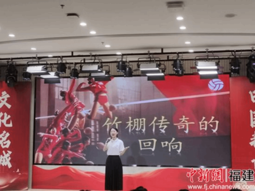 学院“福小宣·在漳州”优秀宣讲员曾舒瑜在比赛讲稿《竹棚传奇的回响》中这样写道:“当我以大学生讲解员的身份走进漳州中国女排精神展示馆时,那些照片,那些展品,让我真正读懂了女排的奋斗精神”,实现“讲解一次、教育一生、奋斗终生”的认知升华。