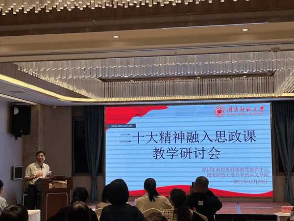 据悉,此次研讨会是漳州市高校思政课教师深入学习贯彻习近平新时代中国特色社会主义思想和党的二十大精神,落实立德树人根本任务的实际行动和具体举措。与会老师表示,专家的授课对大家吃透党的二十大精神,切实把党的二十大精神融入思政课教学有重要的指导作用。