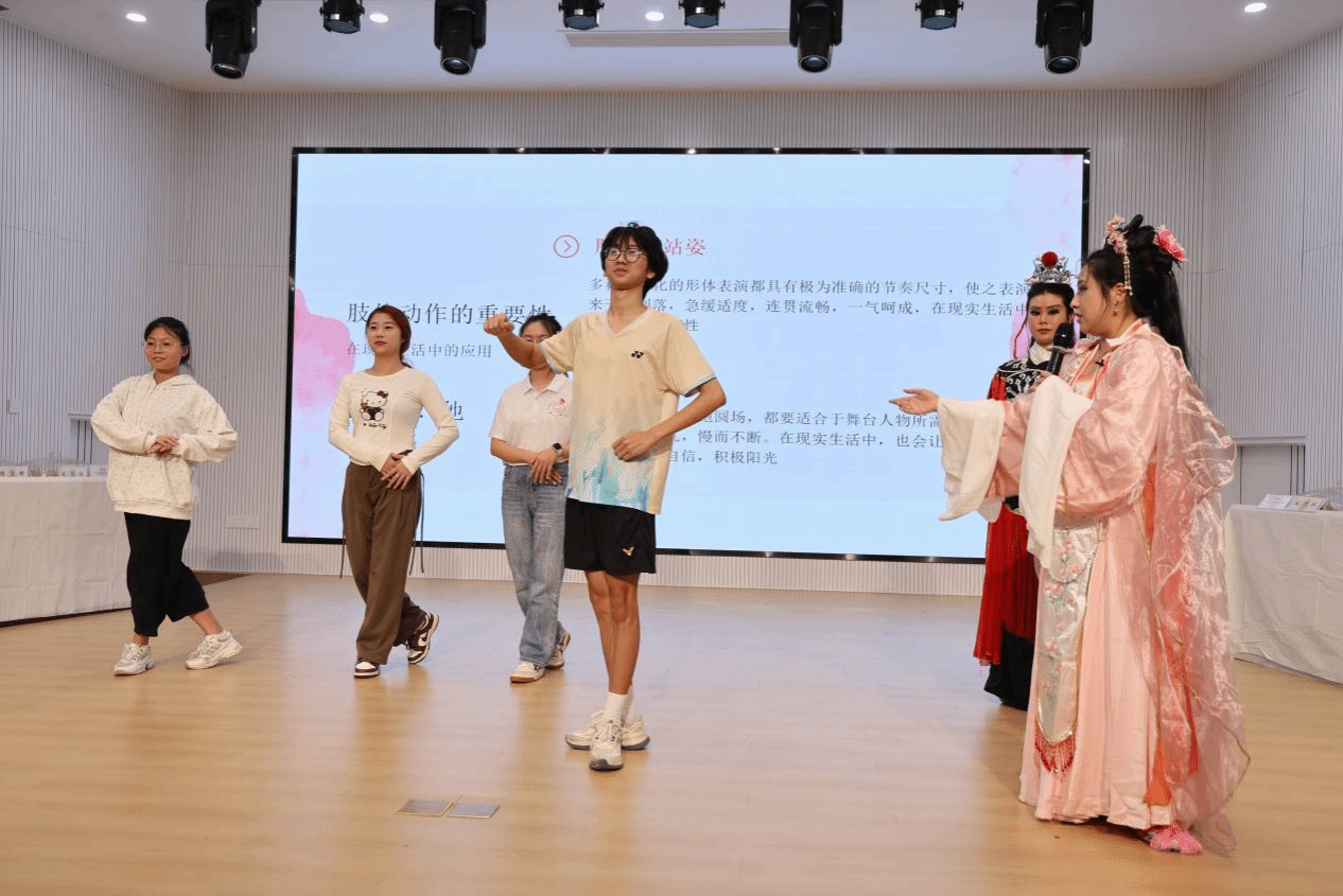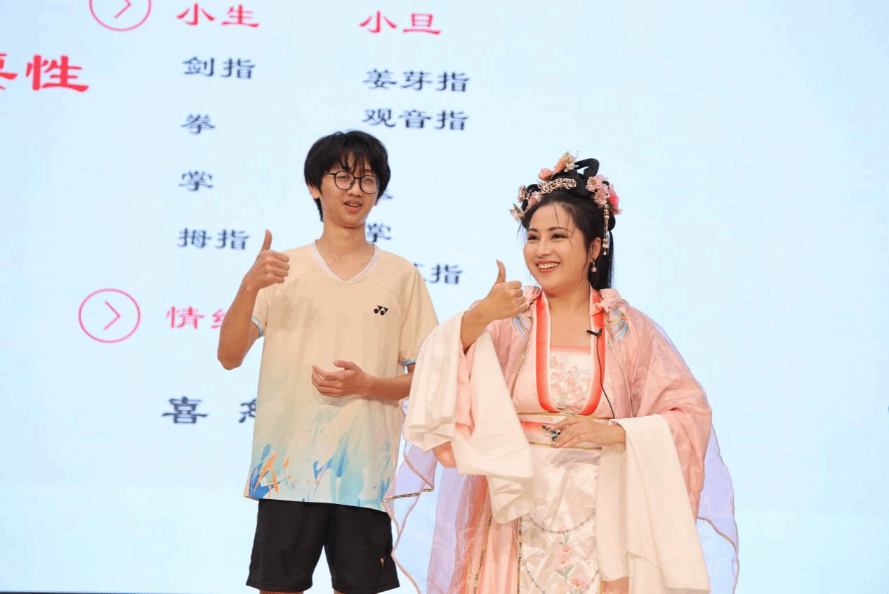 在活动现场,tyc41183太阳成集团台湾教师、文学院副教授李姿莹,漳州市戏剧研究所所长蔡宇飞为同学们讲述了台湾歌仔戏、芗剧的发展历史,带领同学们了解地方戏曲艺术的演变史和两岸文化交流的历史。李姿莹老师与tyc41183太阳成集团戏曲协会会长连思颖同学通过现场表演,让同学们近距离感受芗剧独特的身段韵律、细腻的表演手法以及优美的唱腔唱段,点燃了在座同学对芗剧乃至中华优秀传统文化的热情。