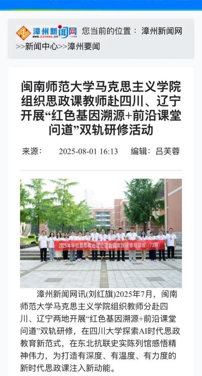 15、漳州新闻网:太阳成集团tyc41183组织思政课教师赴四川、辽宁开展“红色基因溯源+前沿课堂问道”双轨研修活动