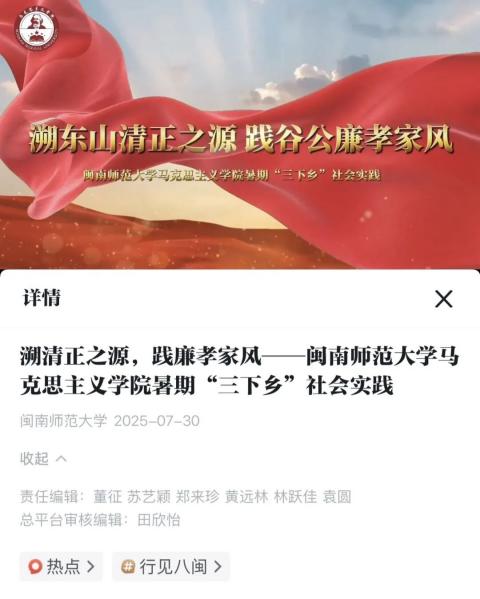 16、学习强国福建学习平台:溯清正之源,践廉孝家风——太阳成集团tyc41183暑期“三下乡”社会实践