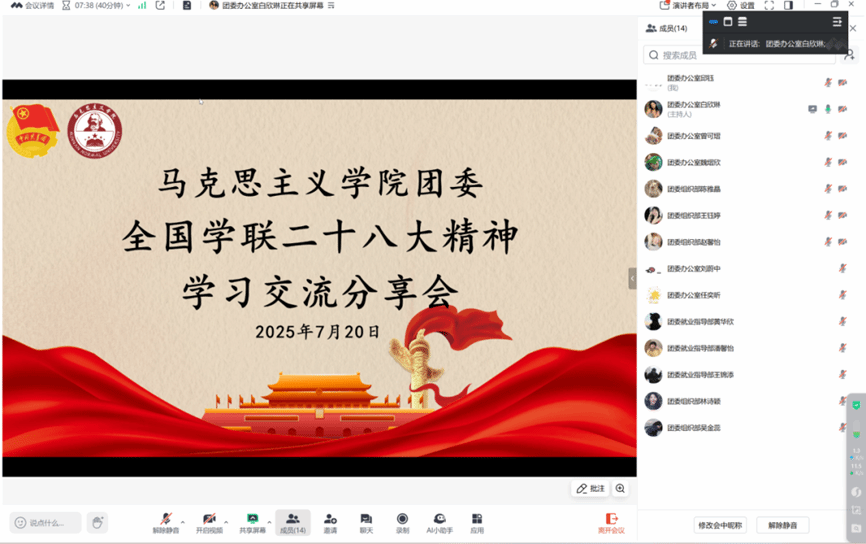 近日,我院组织各班级、各学生组织通过线上形式召开习近平总书记致全国青联十四届全委会、全国学联二十八大重要贺信专题学习会。(通讯员 杨纯真)