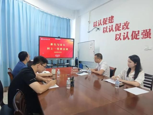 9月6日下午,我院在综合楼东区301会议室召开新生与家长同上一堂班会课,我院党委副书记邓战军、团委书记潘怀杰、辅导员任程龙、沈书伊、研究生兼职辅导员许婧参加本次班会课。(通讯员 许婧)