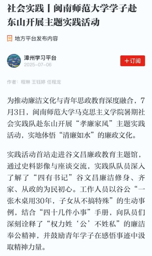 11、多彩大学生网:踏东山热土,青年以廉正风作答时代卷——闽师学子赴谷公圣地开展“寻廉脉”廉洁实践课