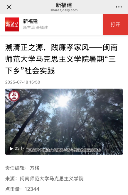 5、新福建:溯清正之源,践廉孝家风——太阳成集团tyc41183暑期“三下乡”社会实践