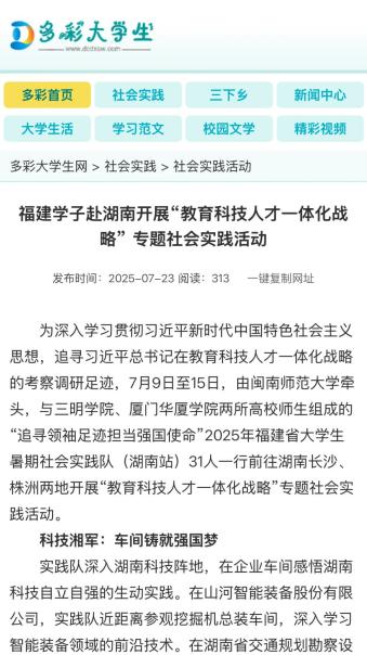 14、人民网:探索教育科技人才融合发展新路径 福建省大学生暑期社会实践示范队走进湖南