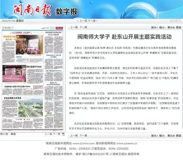 3、闽南日报:闽南师大学子 赴东山开展主题实践活动