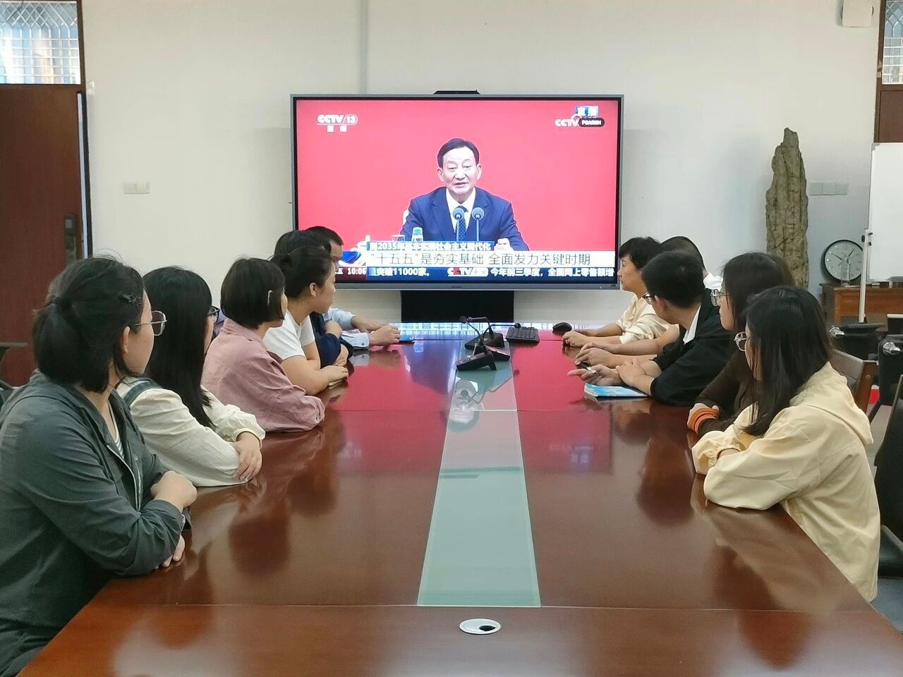 10月24日上午,我院组织师生于综合楼中区404会议室共同观看党的二十届四中全会精神解读直播。(通讯员 谢诗瑶)