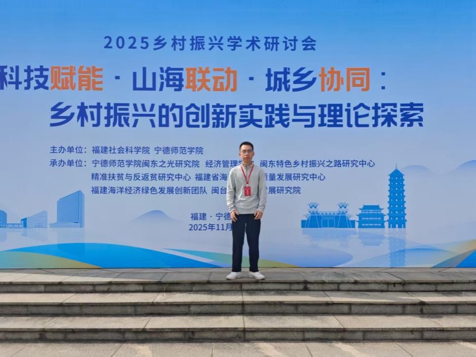 11月1日,我院2024级思想政治教育专业研究生缪俊杰受邀参加由福建社会科学院与宁德师范学院联合主办的2025乡村振兴学术研讨会。(通讯员 缪俊杰)