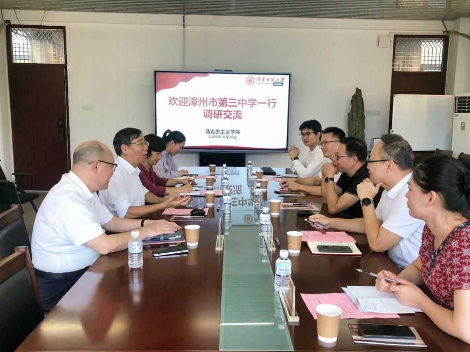 10月30日上午,我院携手漳州市第三中学于综中404会议室召开共建调研交流会。漳州市第三中学党委书记庄清寿、党委副书记邱亮、教研室副主任李朝升,我院党委书记方琼、院长陈再生教授、副院长黄耀明教授、郑育琛教授及学院班子成员共同出席了本次会议。(通讯员 谢小燕)