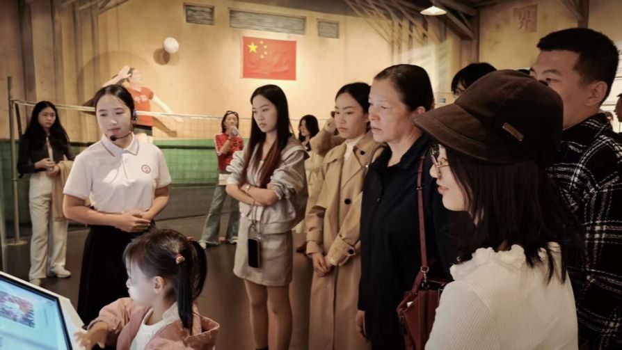 12月6日下午,我院“薪马新声”志愿讲解员黄菲菲于漳州中国女排精神展示馆为厦门海洋职业学院团队全程讲解,新一批志愿讲解员现场学习。(通讯员 李可馨)