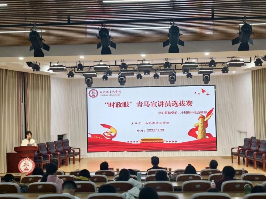 12月1日晚,我院于马院礼堂举行“时政眼”青马宣讲员选拔赛,本次选拔赛由2024级思想政治教育专业研究生刘芊芊主持,李德栓教授、余思新教授、牛俊伟教授担任评委,院党委副书记邓战军老师参加并作活动小结。(通讯员 黄天豪)