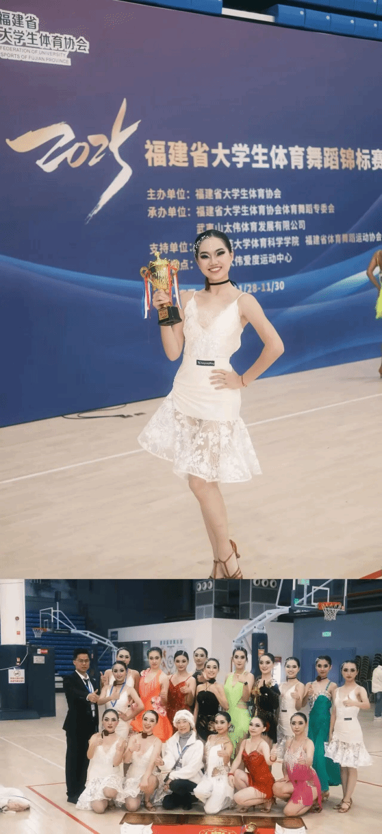 近日,我院2025级硕士研究生李玟同学在由福建省大学生体育协会主办的2025年福建省大学生体育舞蹈锦标赛中荣获大学甲组青春集体舞一等奖。(通讯员 杨纯真)