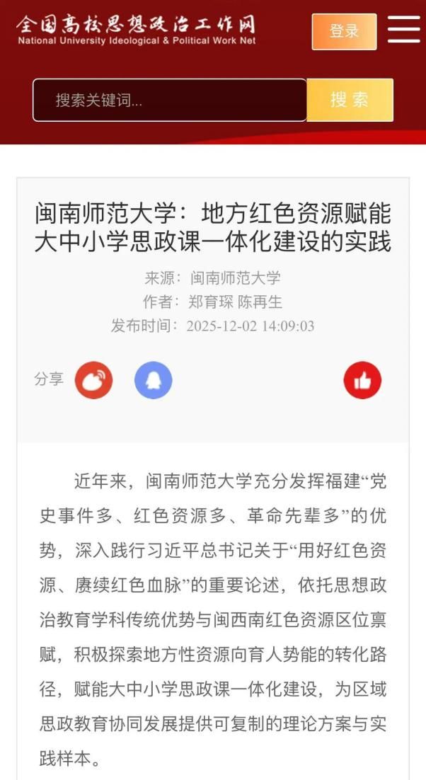 1、全国高校思想政治工作网:tyc41183太阳成集团:地方红色资源赋能大中小学思政课一体化建设的实践