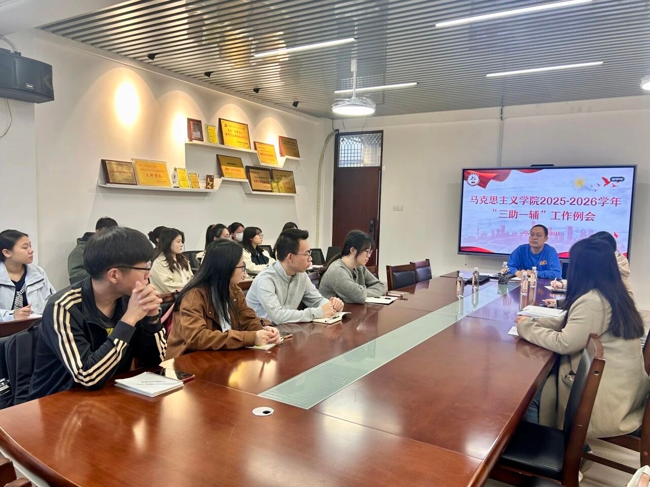12月9日,我院在综中404召开2025-2026学年“三助一辅”工作例会,会议由我院团委书记潘怀杰主持,我院辅导员沈书伊老师、全体研究生兼职辅导员及助管参加。(通讯员 许婧)