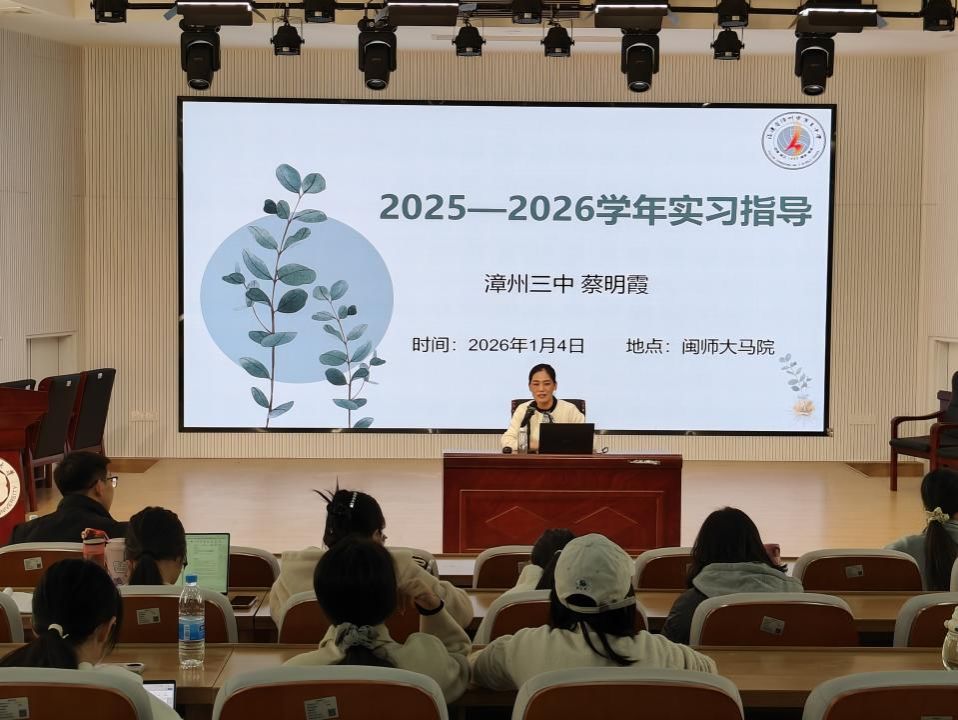 近日,我院于马院礼堂召开实习指导讲座,本次讲座由辅导员任程龙老师主持,我院校友漳州三中蔡明霞老师主讲,2023级全体本科生参加。蔡明霞老师结合自身丰富教学经验,围绕教学实习、班主任工作开展进行了系统讲解与深入指导。(通讯员 黄娇萍)