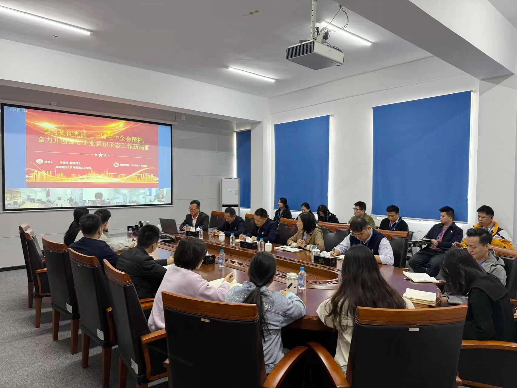 近日,应漳州路桥物资发展有限公司的邀请,我院牛俊伟教授为该公司党员干部职工作《深入学习贯彻党的二十届三中全会精神,奋力开创国有企业意识形态工作新局面》的专题报告。(通讯员 牛俊伟)