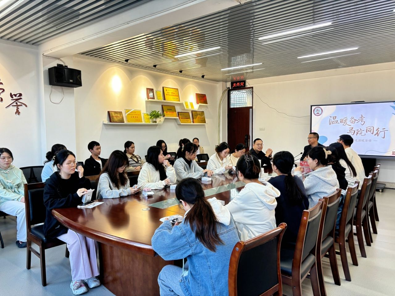 12月3日,我院在综中404会议室举行了“温暖备考 马院同行”考研送温暖活动,院党委副书记邓战军、团委副书记潘怀杰、辅导员任程龙、沈书伊为2021级考研学子送上了诚挚的祝福和精心准备的“考研加油礼包”。(通讯员 张小敏)