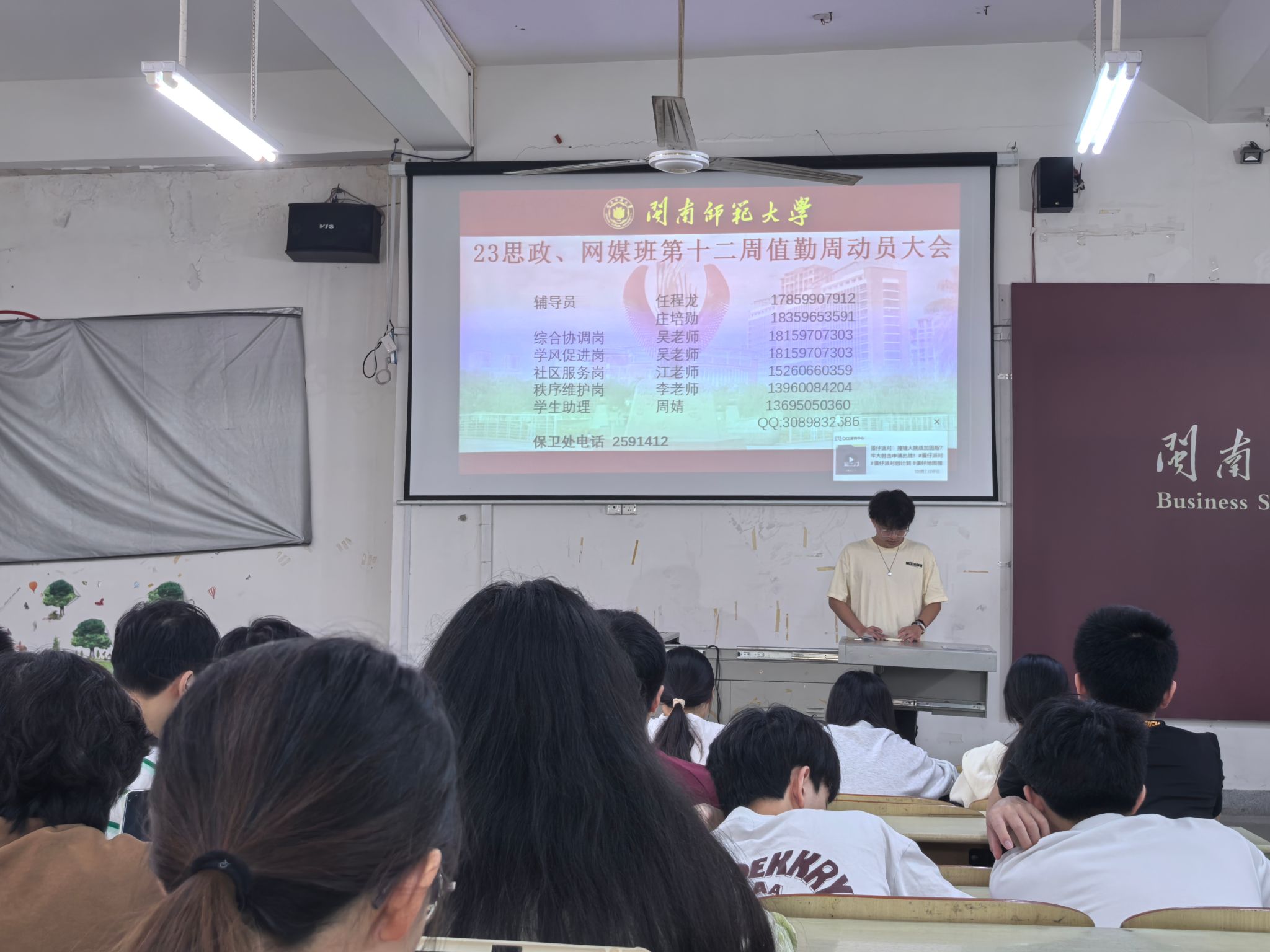 11月14日中午,我院于笃行楼223与新传院网媒班开展第十二周执勤周动员大会。(通讯员 熊艺)