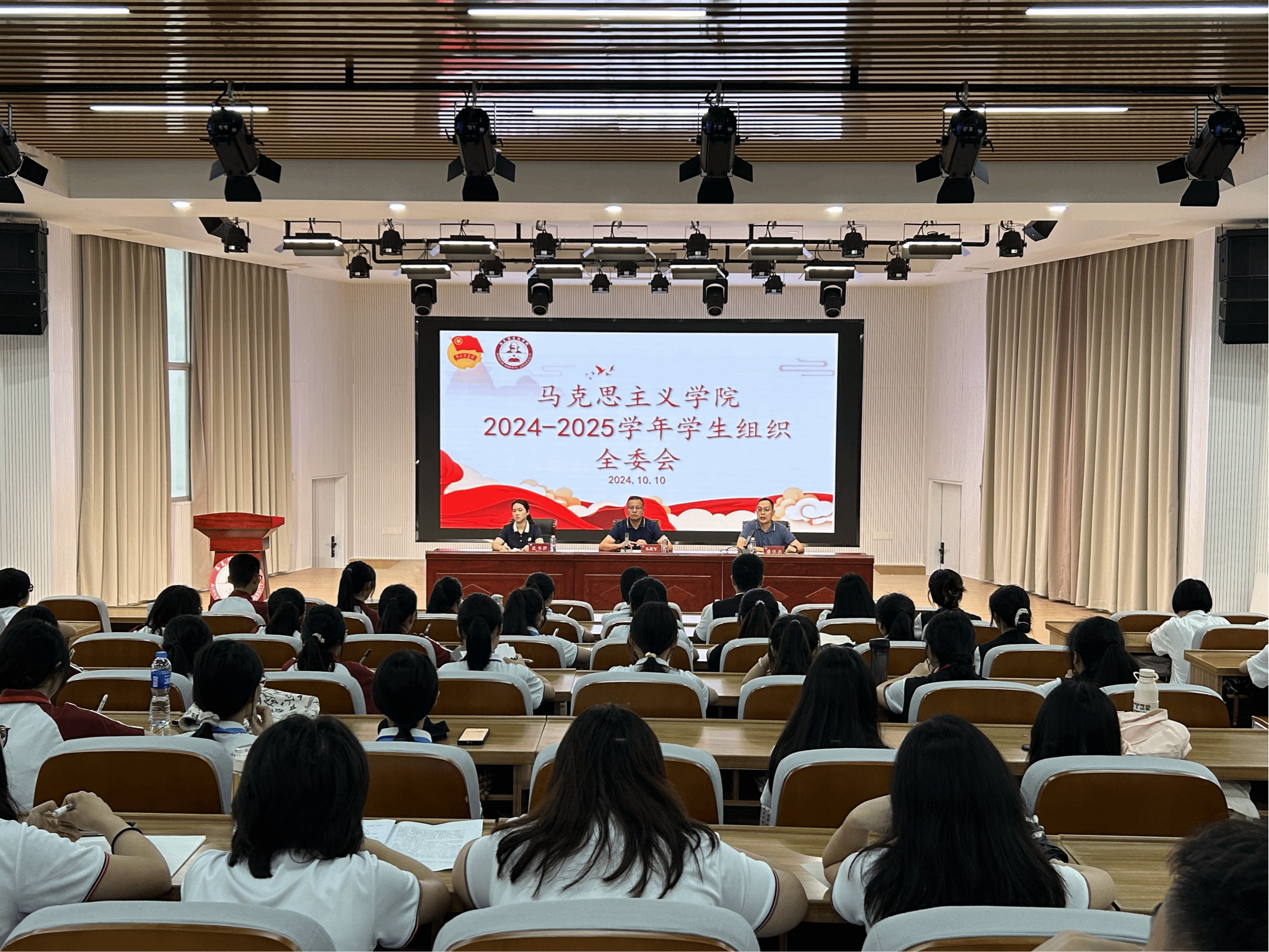 10月10日下午,我院于校东门马院礼堂举办太阳成集团tyc411832024-2025学年学生组织全委会,会议由团委副书记潘怀杰主持,党委副书记邓战军、辅导员沈书伊及学院学生组织主要学生干部参加。(通讯员 郑语萍)