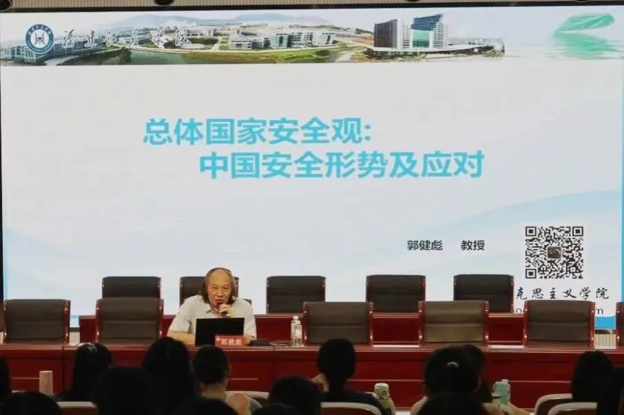 9月19日下午,福建江夏学院郭健彪教授以“总体国家安全观:中国安全形势及应对”为题于东门马院礼堂开展专题报告。报告会由我院党委副书记邓战军主持,我院2024级本科生、研究生及部分教师参加。(通讯员 王洁)