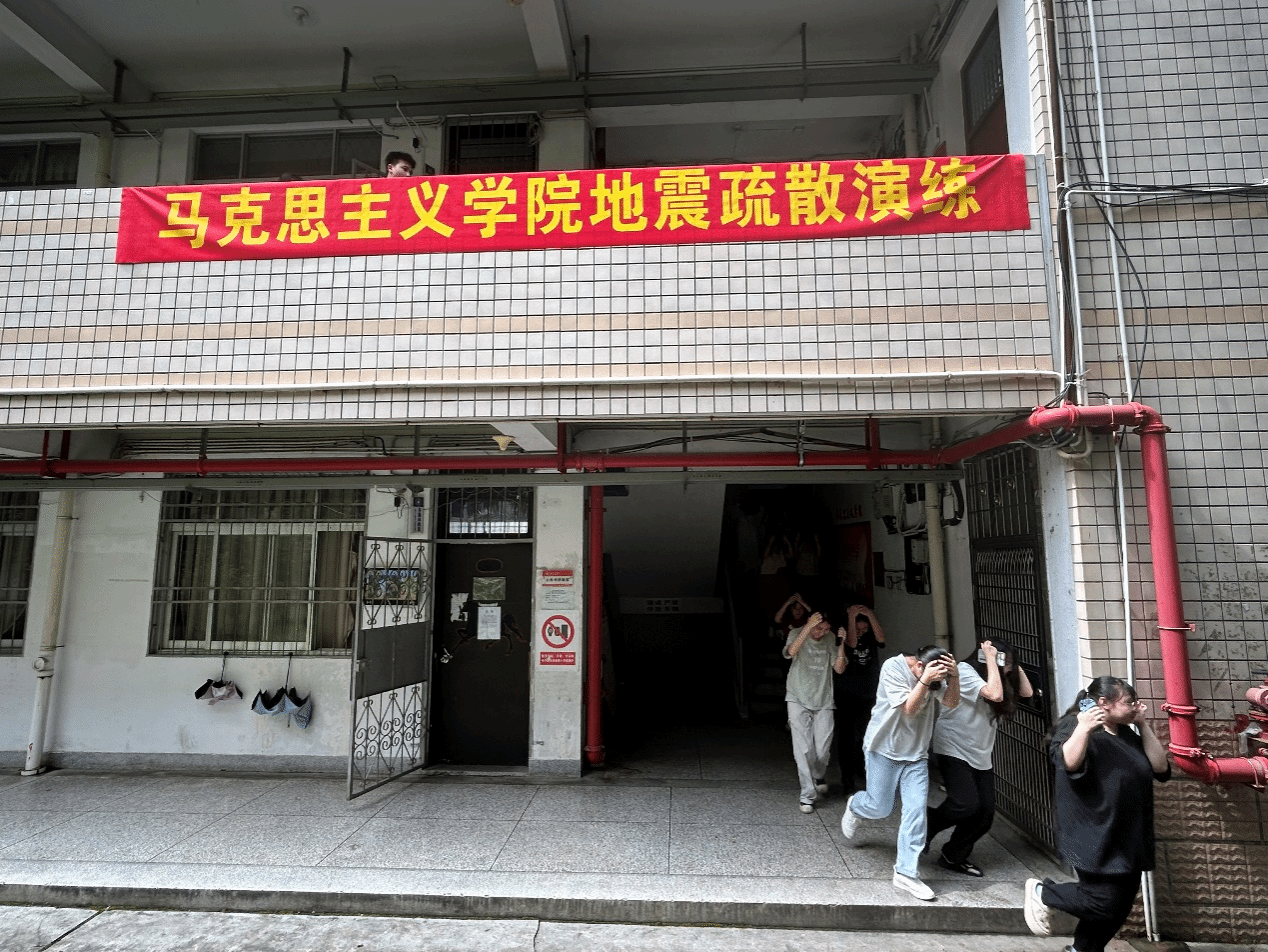 6月14日上午,我院与外国语学院一起在综合楼开展地震疏散演练。(通讯员 罗哲蔚)