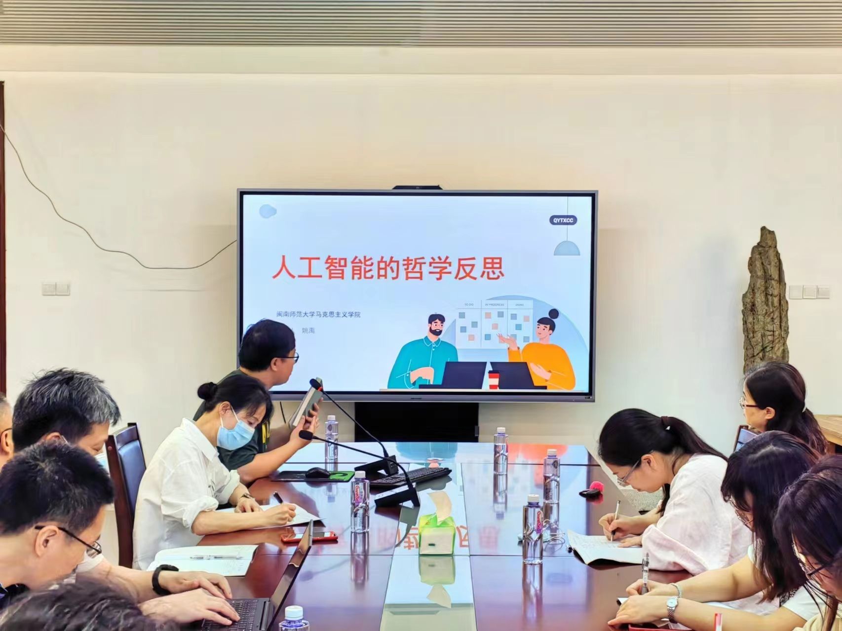 4月18日下午,我院于综合楼中区404召开集体备课会暨博士论坛,会议由教研室主任马怡博士主持,本学期承担“原理”课程教学任务的教师及部分研究生参会。(通讯员 彭飞雪)