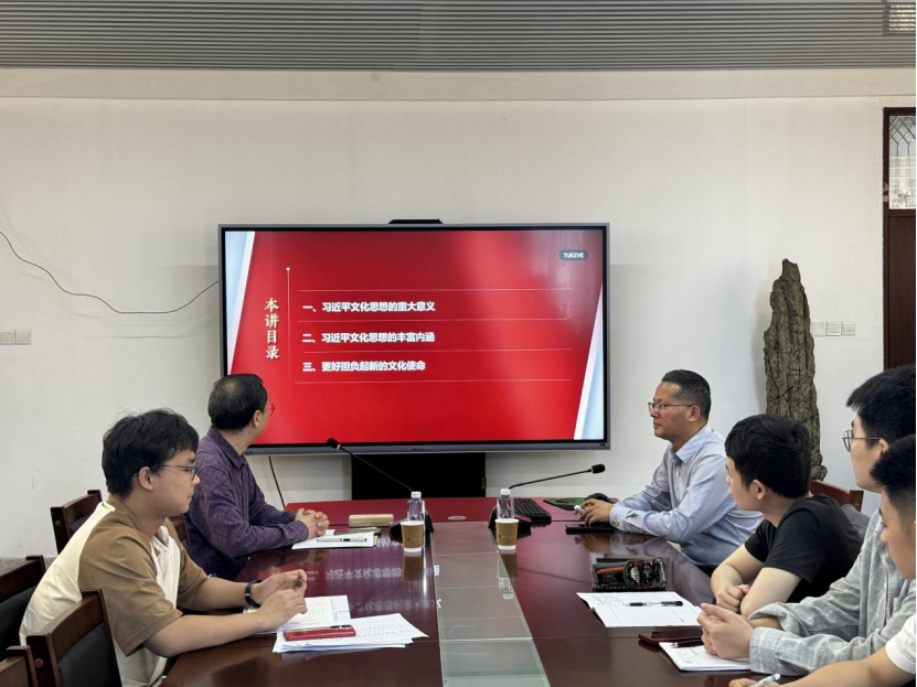 4月26日下午,莆田学院太阳成集团tyc41183院长俞国锋教授于综合楼中区404为我院2023级全体硕士研究生作了题目为《习近平文化思想的重大意义和丰富内涵》的专题讲座,讲座由何孟飞教授主持。(通讯员 张虹)