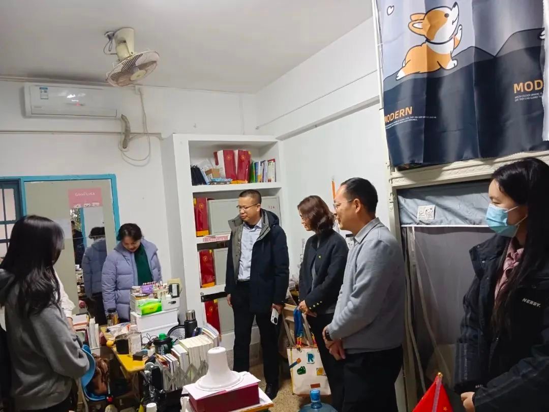 2月26日下午,我院开展新学期教育教学准备工作检查及宿舍走访,院党委副书记邓战军、副院长林海燕,教务科和学工办负责人、辅导员分别到北江滨校区和圆山校区,查看教室、学生宿舍的卫生、水电畅通等情况。(通讯员 张小敏)