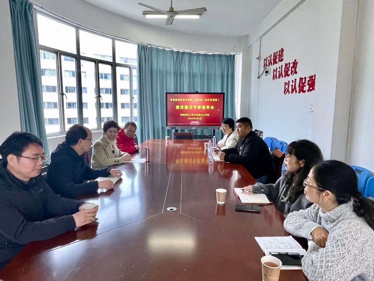 近日,我院在综合楼中区201多次组织召开师范专业认证中期审核及整改工作推进会。学院教学副院长、思想政治教育专业负责人、教学秘书等参加会议。(通讯员 韩灿伟)