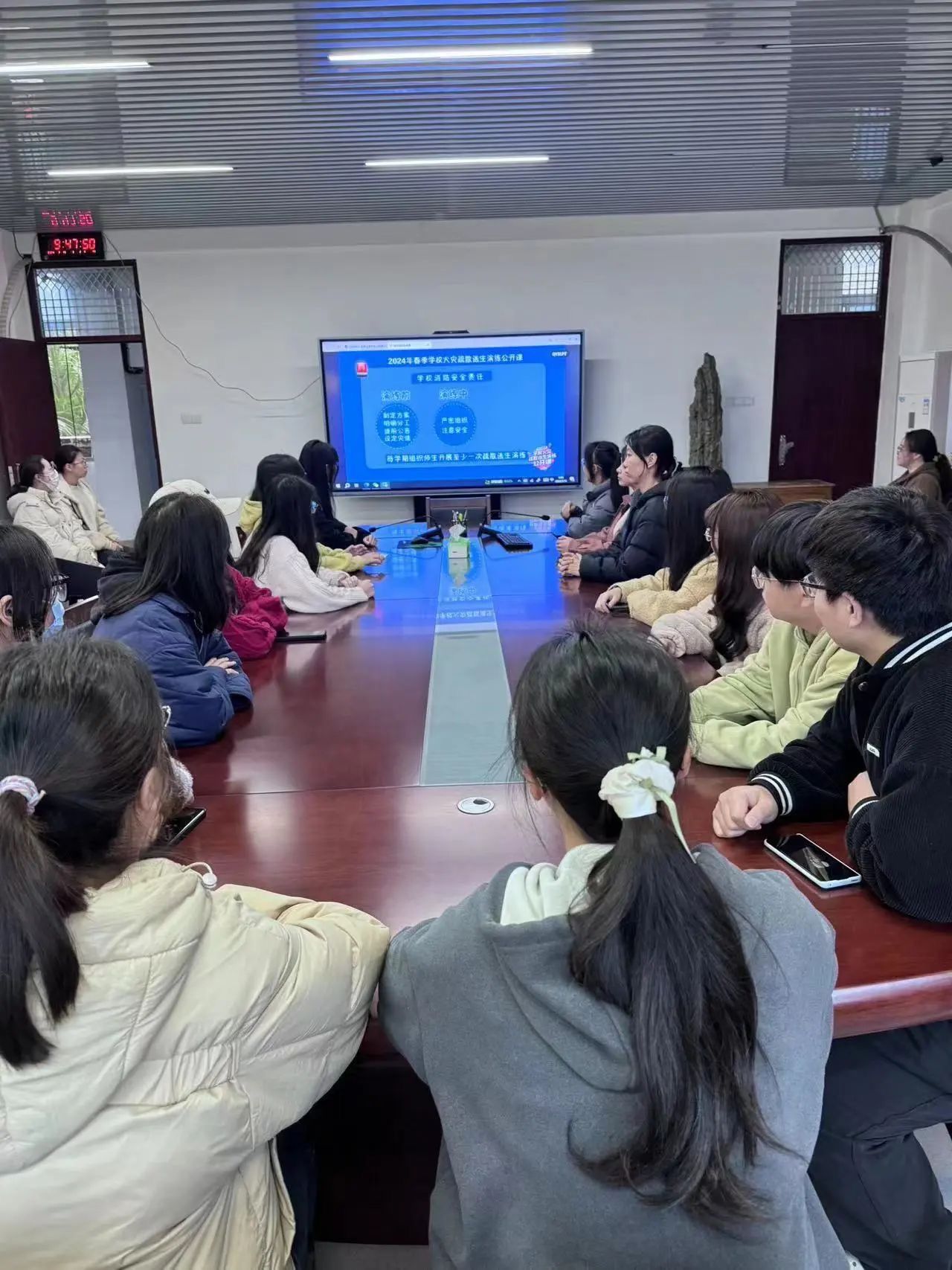 3月15日上午,我院师生于综中404观看学习《2024年春季学校火灾疏散逃生演练公开课》。(通讯员 郑语萍)