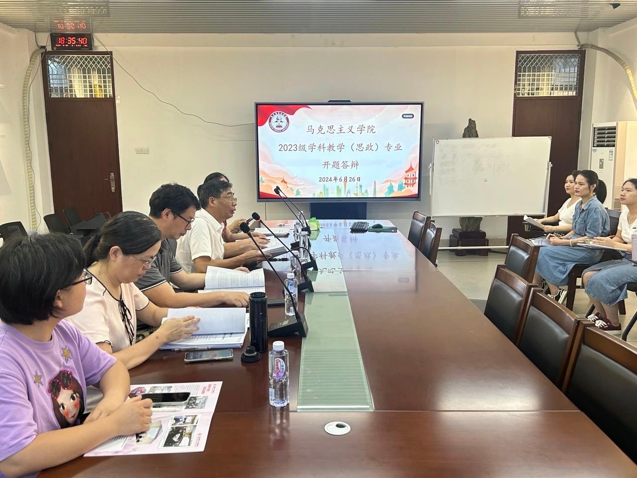 6月26日-27日晚上,我院于综合楼中区404开展2023级学科教学(思政)专业学位论文开题答辩会。此次开题答辩会分为2个小组,分别由我院院长陈再生教授、景云教授主持,共有31名研究生顺利通过开题答辩。(通讯员 张妍)