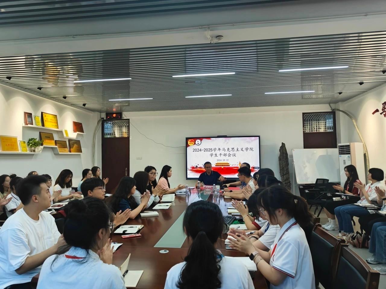 8月30日下午,我院于综合楼东区301会议室召开2024年研究生会新学期工作会议,会议由院团委副书记潘怀杰主持,研究生会主席团成员及各部门负责人参加本次会议。(通讯员 张小敏)