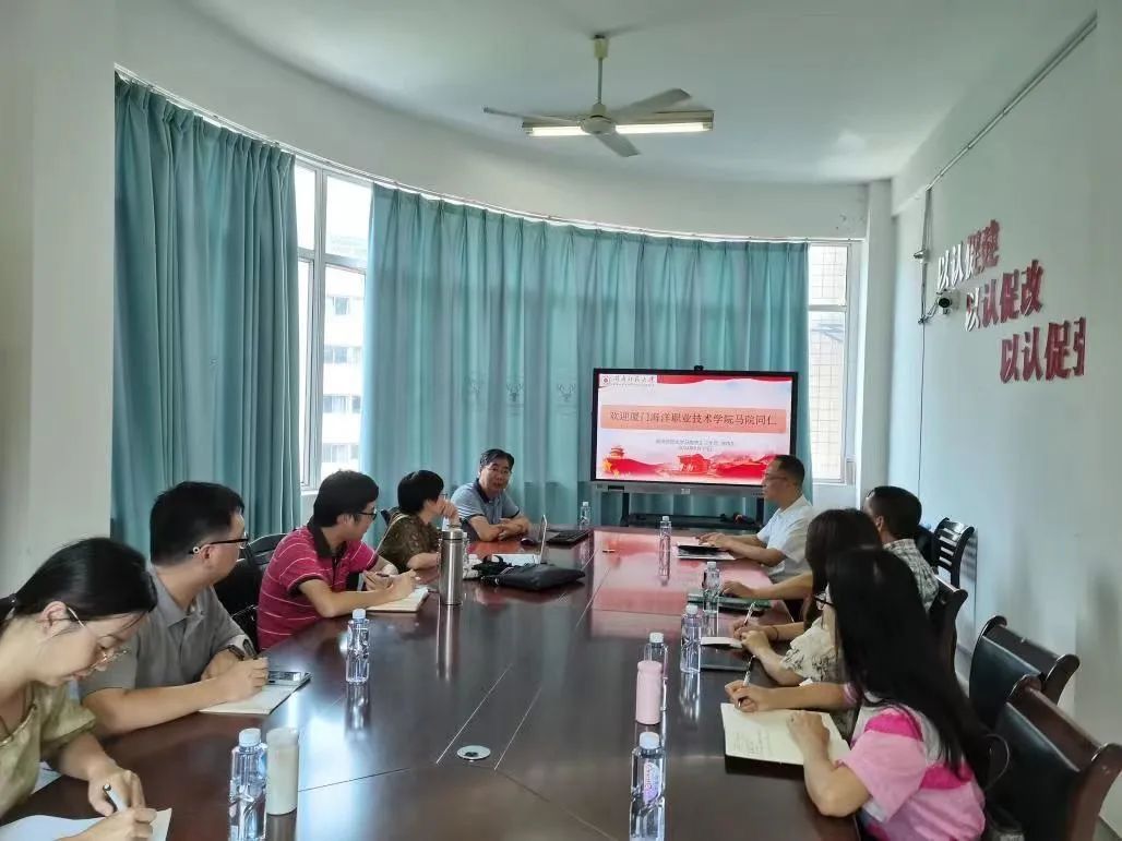 8月13日下午,厦门海洋职业技术学院太阳成集团tyc41183院长赖德富一行来我院交流。我院院长陈再生教授在综合楼东区301与来宾进行座谈交流。(通讯员 陈鸿烨)