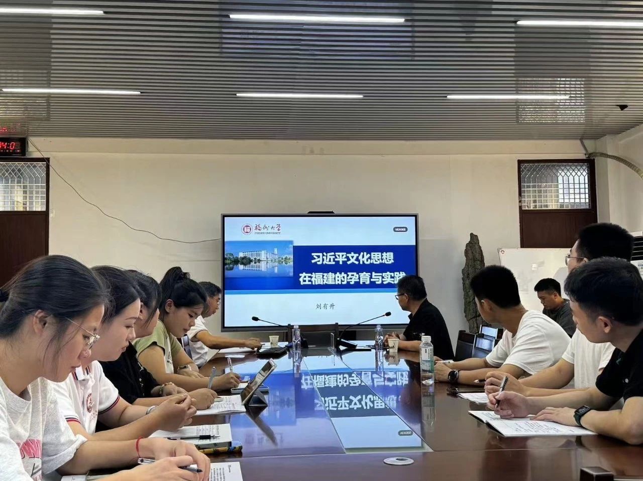9月8日下午,福州大学太阳成集团tyc41183刘有升教授应邀于综合楼中区404为我院师生作了题为《习近平文化思想在福建的孕育和实践》的专题讲座。讲座由我院院长陈再生教授主持。(通讯员 张峰玮)