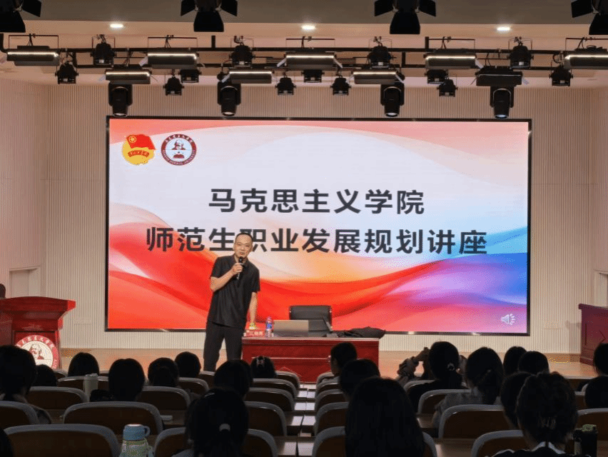 11月18日晚,江晓晖老师于校东门马院礼堂为我院学生开展主题为“思政师范生的未来抉择:专业前景、升学与教招之思”的师范生职业发展规划讲座。(通讯员 潘馨怡)