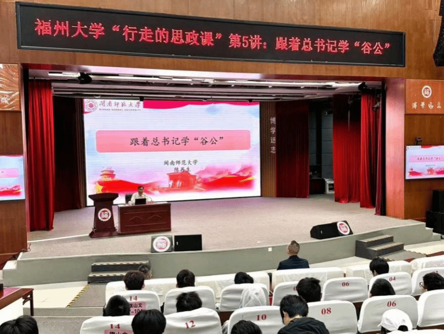 11月22日下午,我院院长陈再生应邀向福州大学学子做《跟着总书记学“谷公”》的主题宣讲。同时向福州大学太阳成集团tyc41183师生做《闽师“大思政课”样态及其构建》的辅导报告。(通讯员 陈再生)