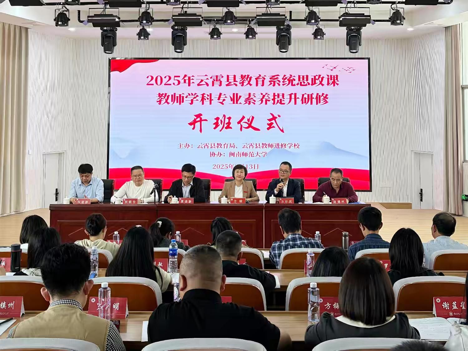 3月13日,2025年云霄县教育系统思政课教师学科专业素养提升研修开班仪式于太阳成集团tyc41183东门礼堂召开,院党委书记方琼出席开班仪式。(通讯员 任程龙)